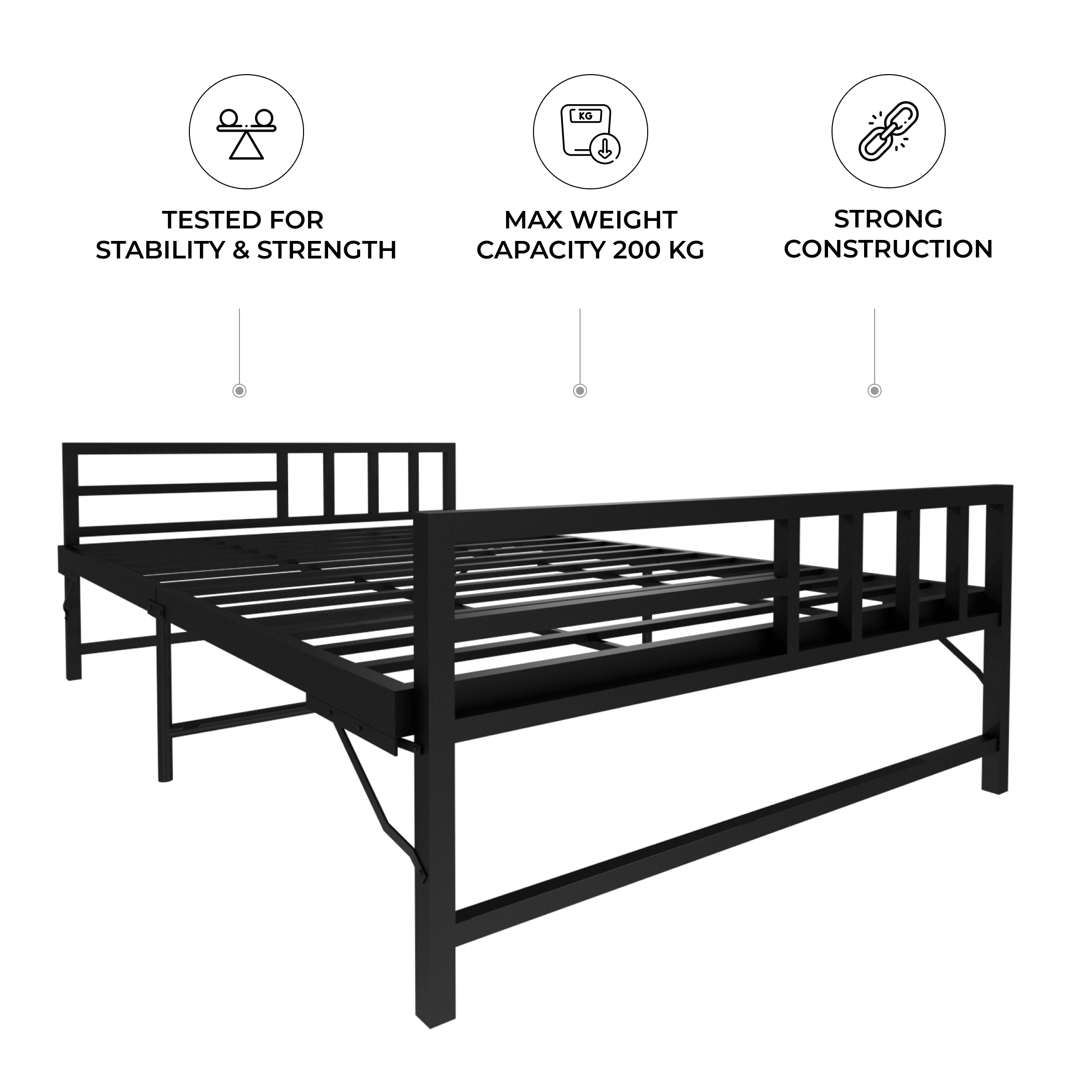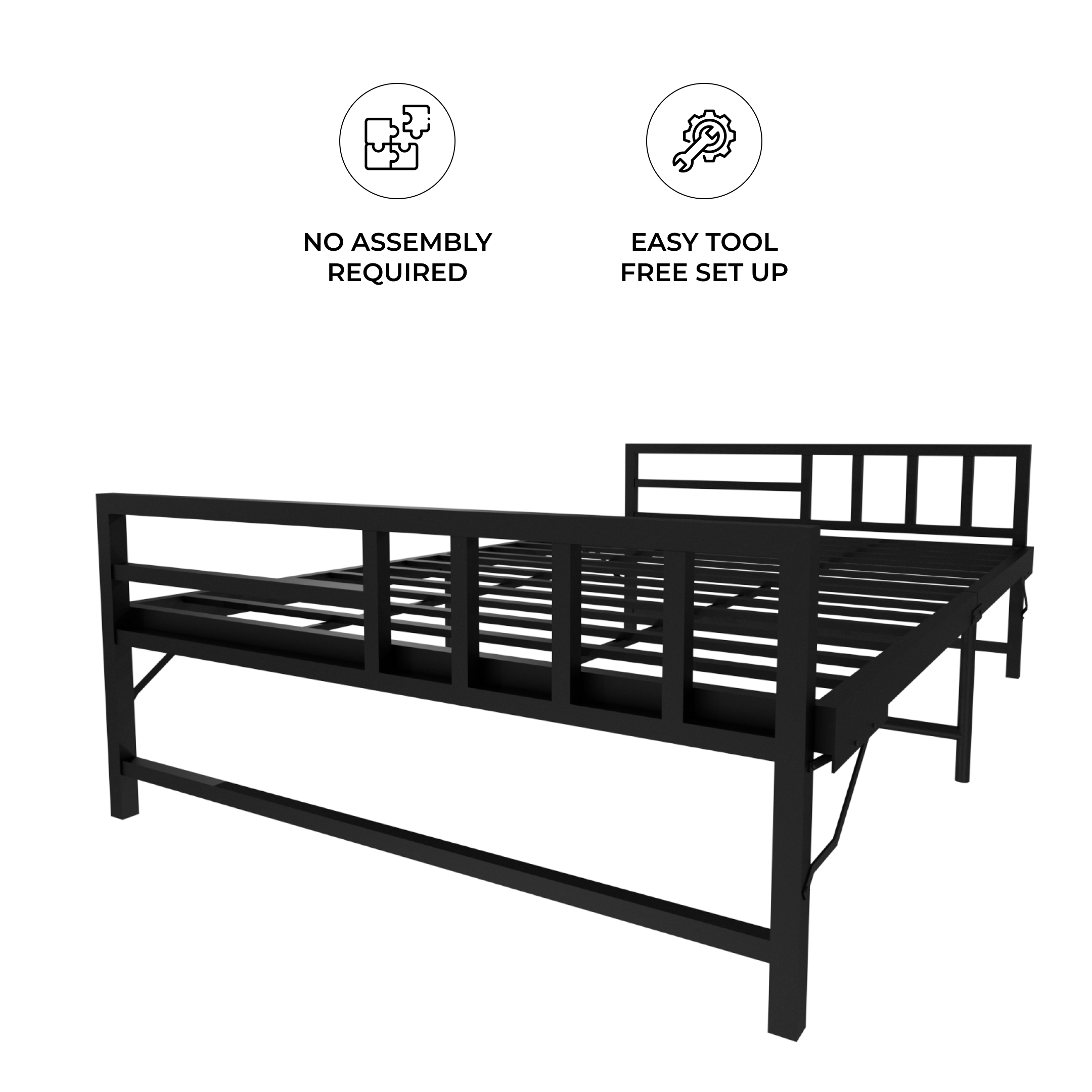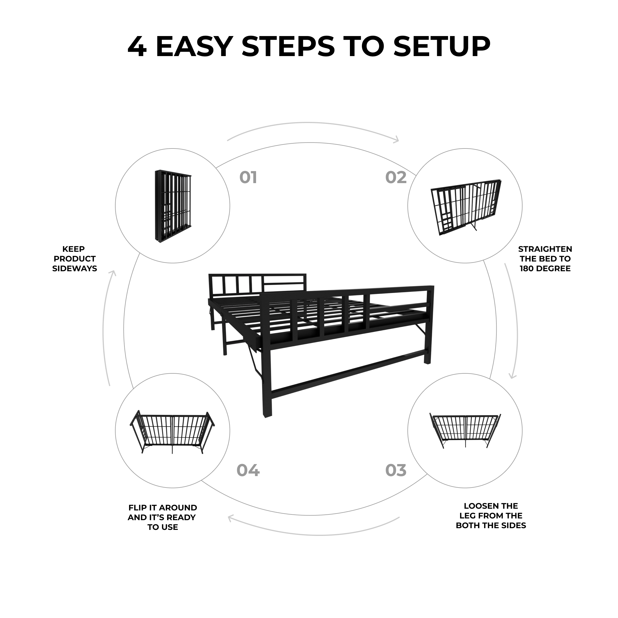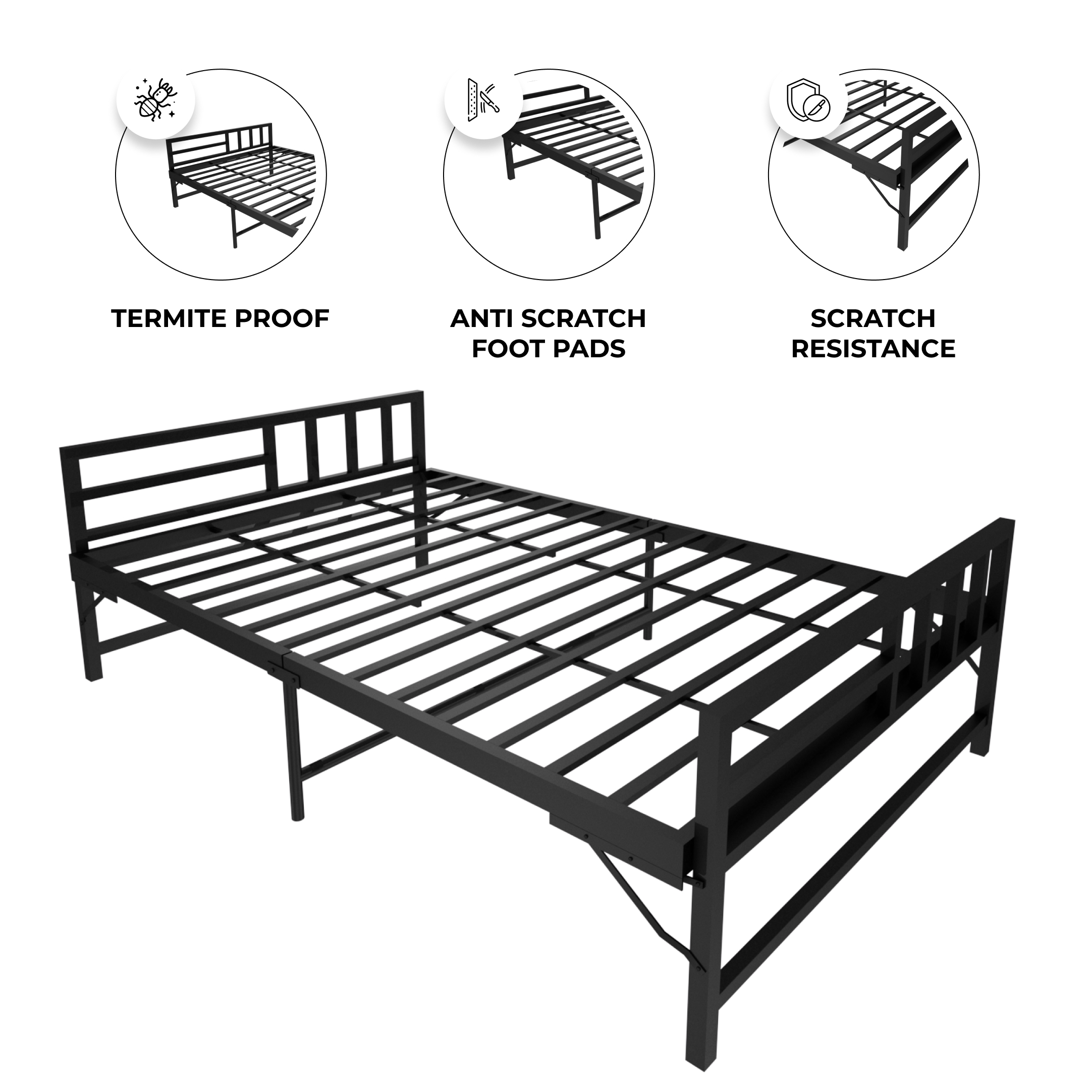Homdec Alpha Space Saving Folding Metal Double Bed (Black, 48 x 75)