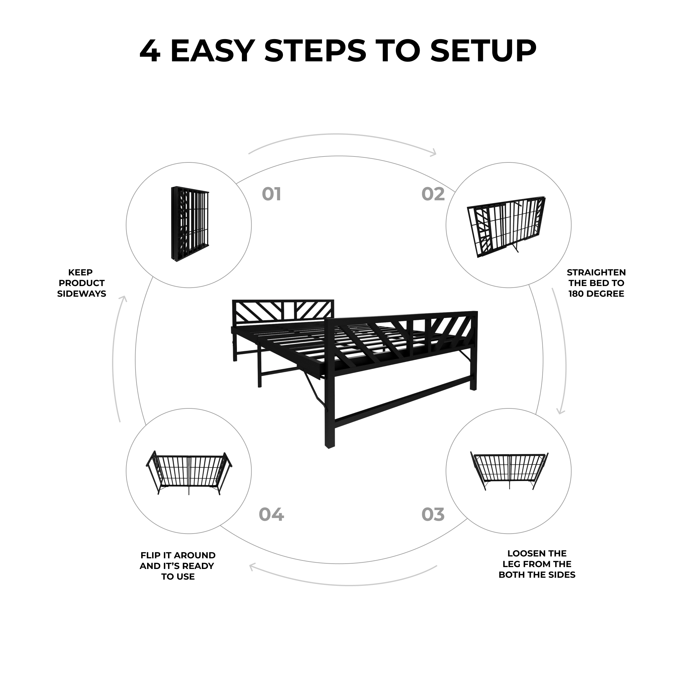 Homdec Cygnus Space Saving Folding Metal Single Bed (Black, 36 x 72)