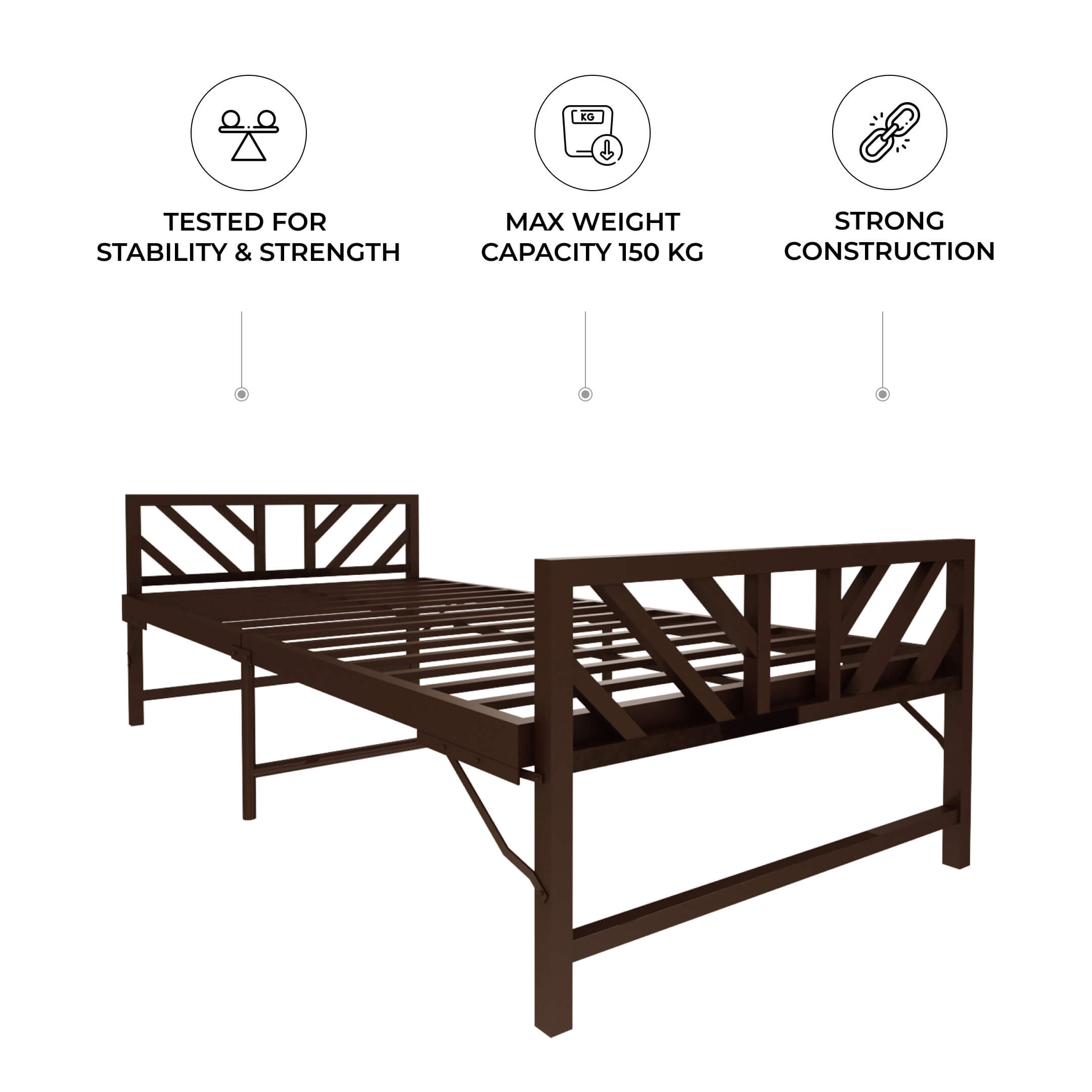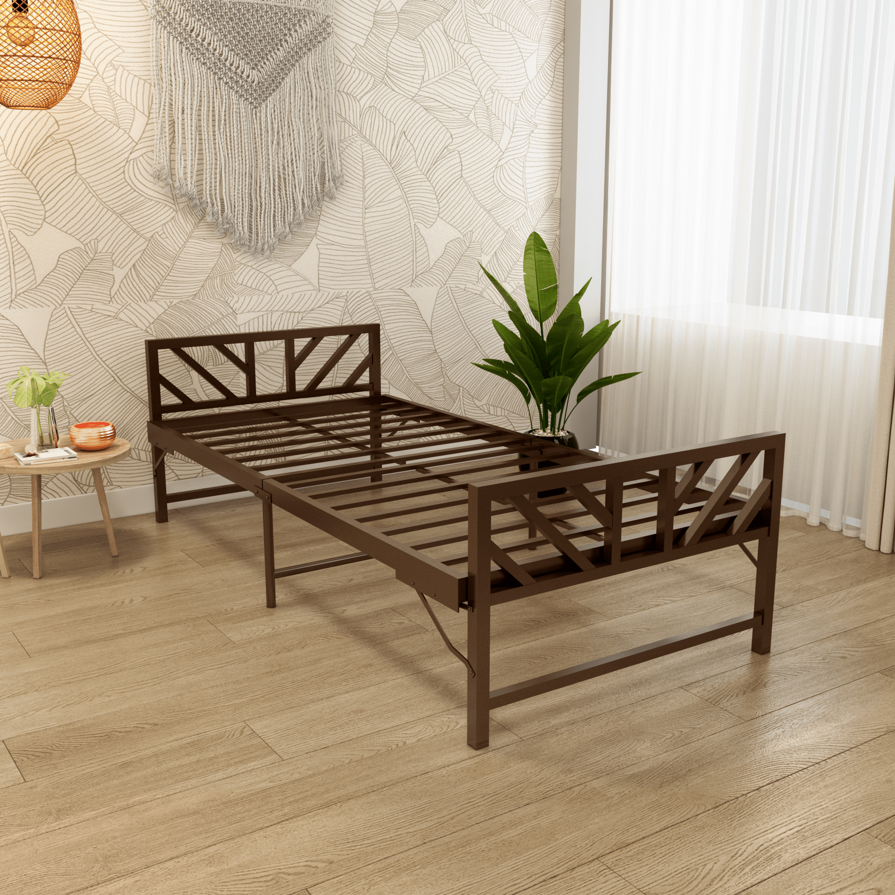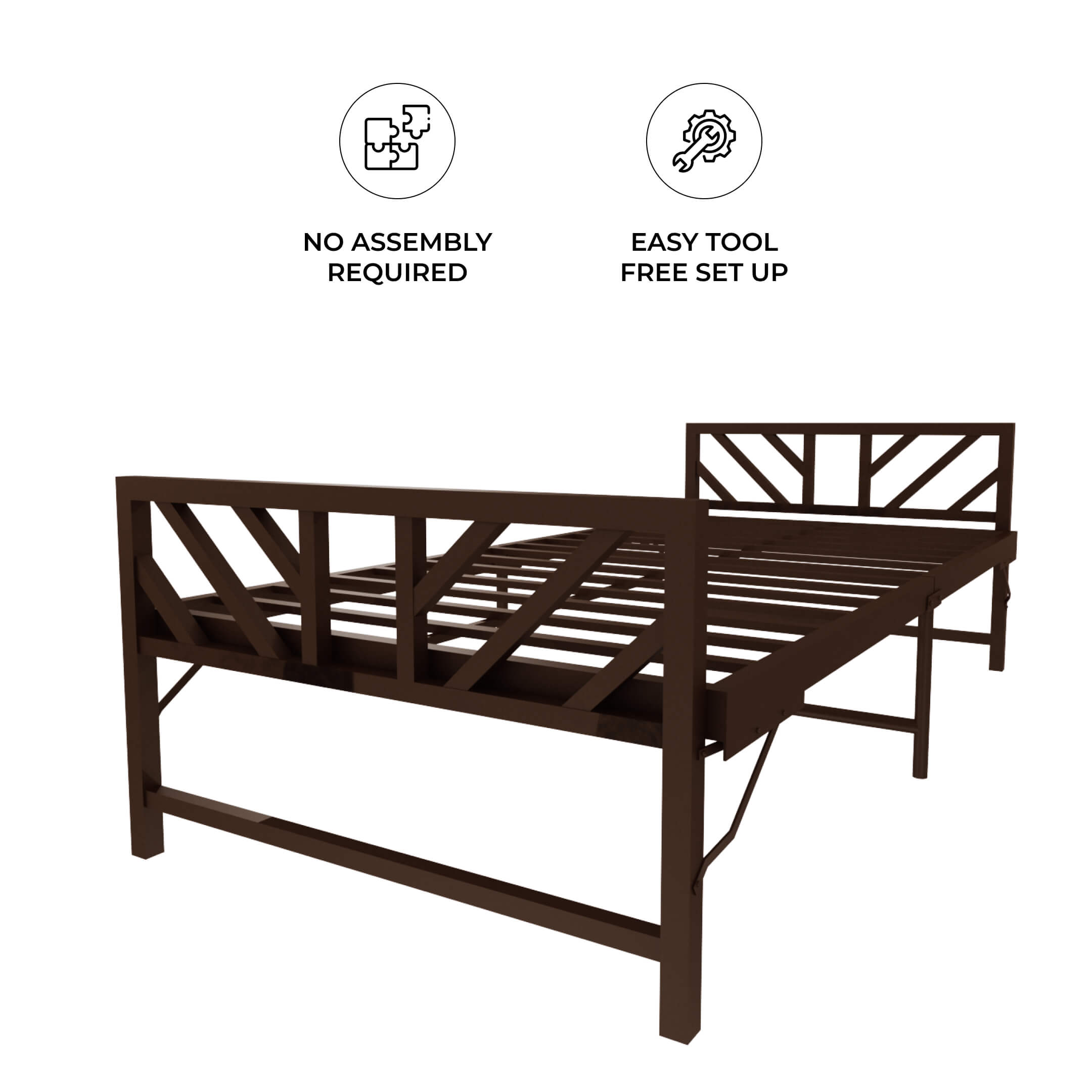 Homdec Cygnus Space Saving Folding Metal Single Bed (Brown, 36 x 72)