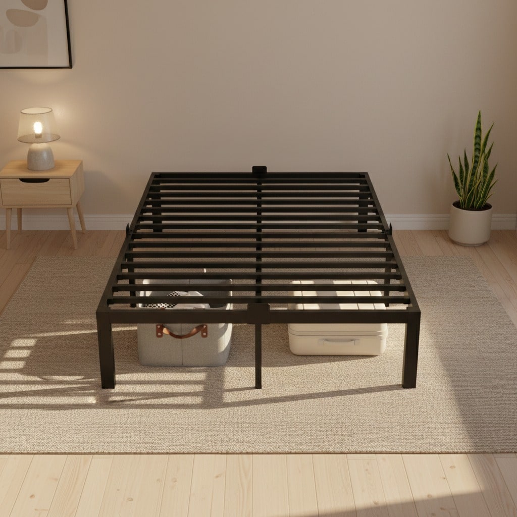 Homdec Atlas Queen Size Metal Bed Frame, with Sturdy and Durable Mattress Base, Mattress Slider Stopper, No Noise, Non-Slip, Easy Assembly, Black.