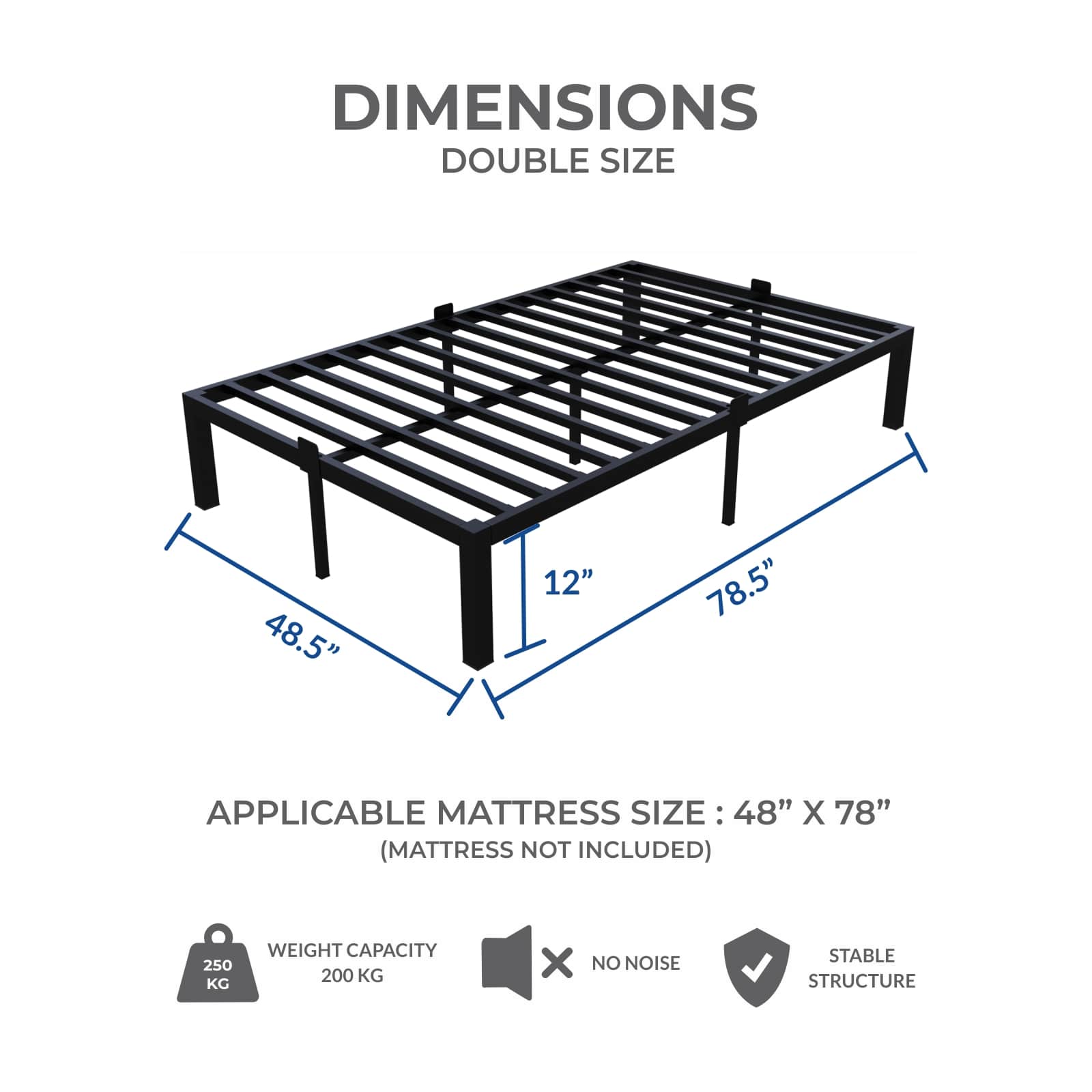 Homdec Atlas Double Size Metal Bed Frame, with Sturdy and Durable Mattress Base, Mattress Slider Stopper, No Noise, Non-Slip, Easy Assembly, Black.