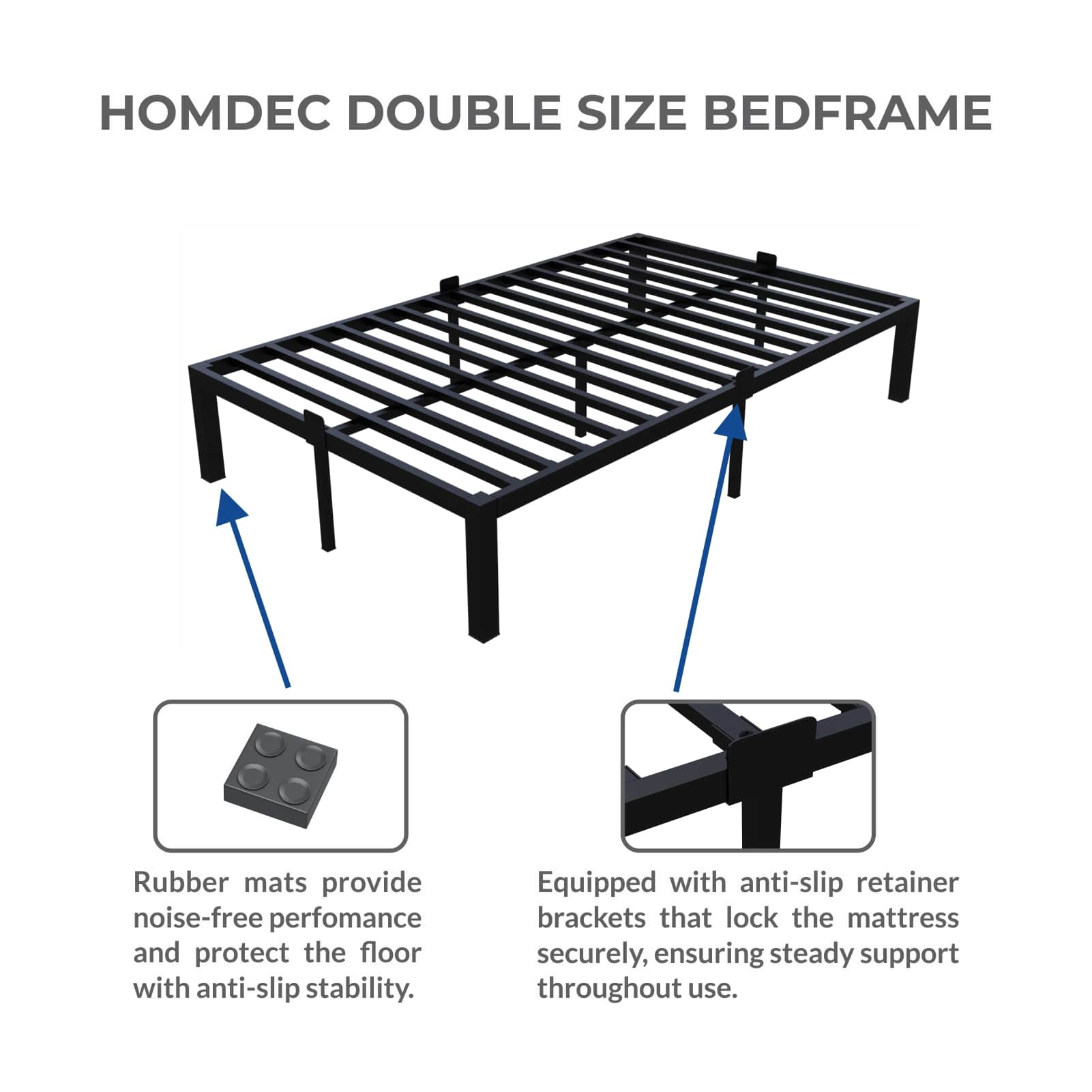 Home » Shop » Homdec Atlas Double Size Metal Bed Frame, with Sturdy and Durable Mattress Base, Mattress Slider Stopper, No Noise, Non-Slip, Easy Assembly, Black.