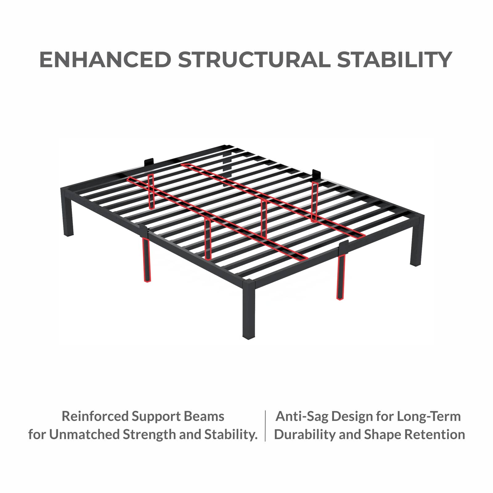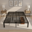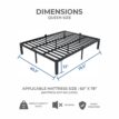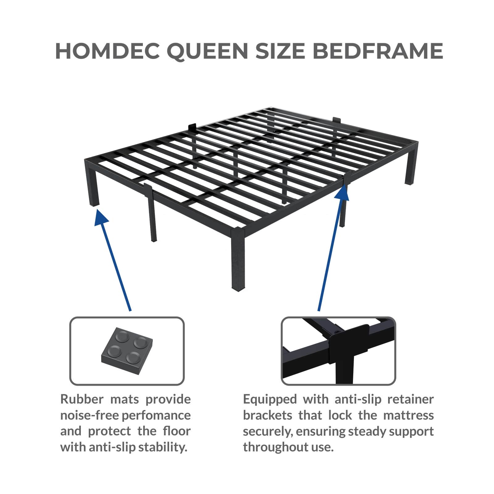 Homdec Atlas Queen Size Metal Bed Frame, with Sturdy and Durable Mattress Base, Mattress Slider Stopper, No Noise, Non-Slip, Easy Assembly, Black.
