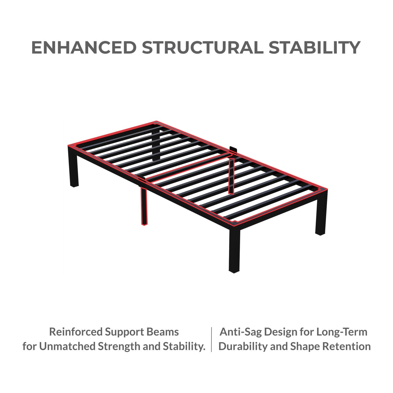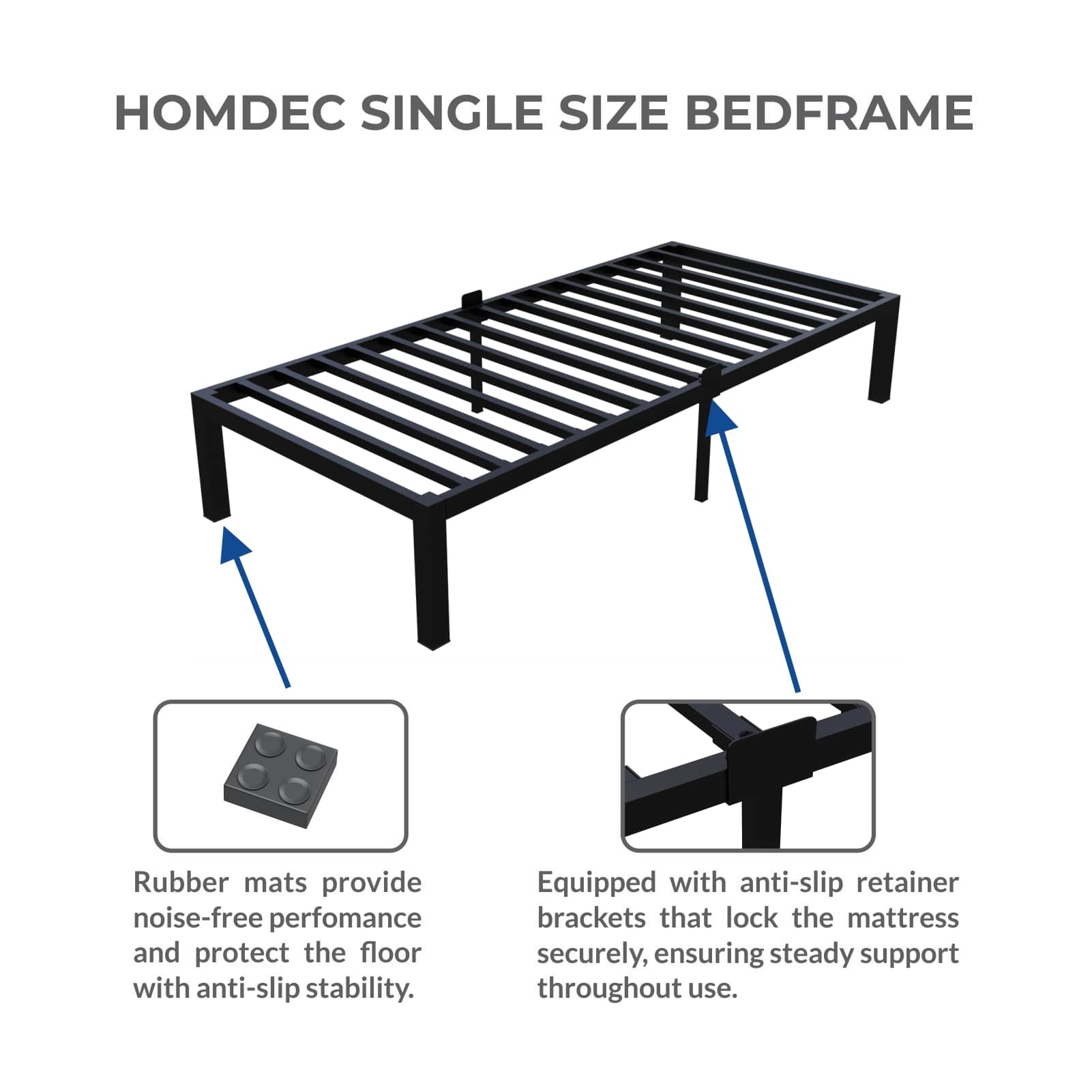 Homdec Atlas Single Size Metal Bed Frame, with Sturdy and Durable Mattress Base, Mattress Slider Stopper, No Noise, Non-Slip, Easy Assembly, Black.