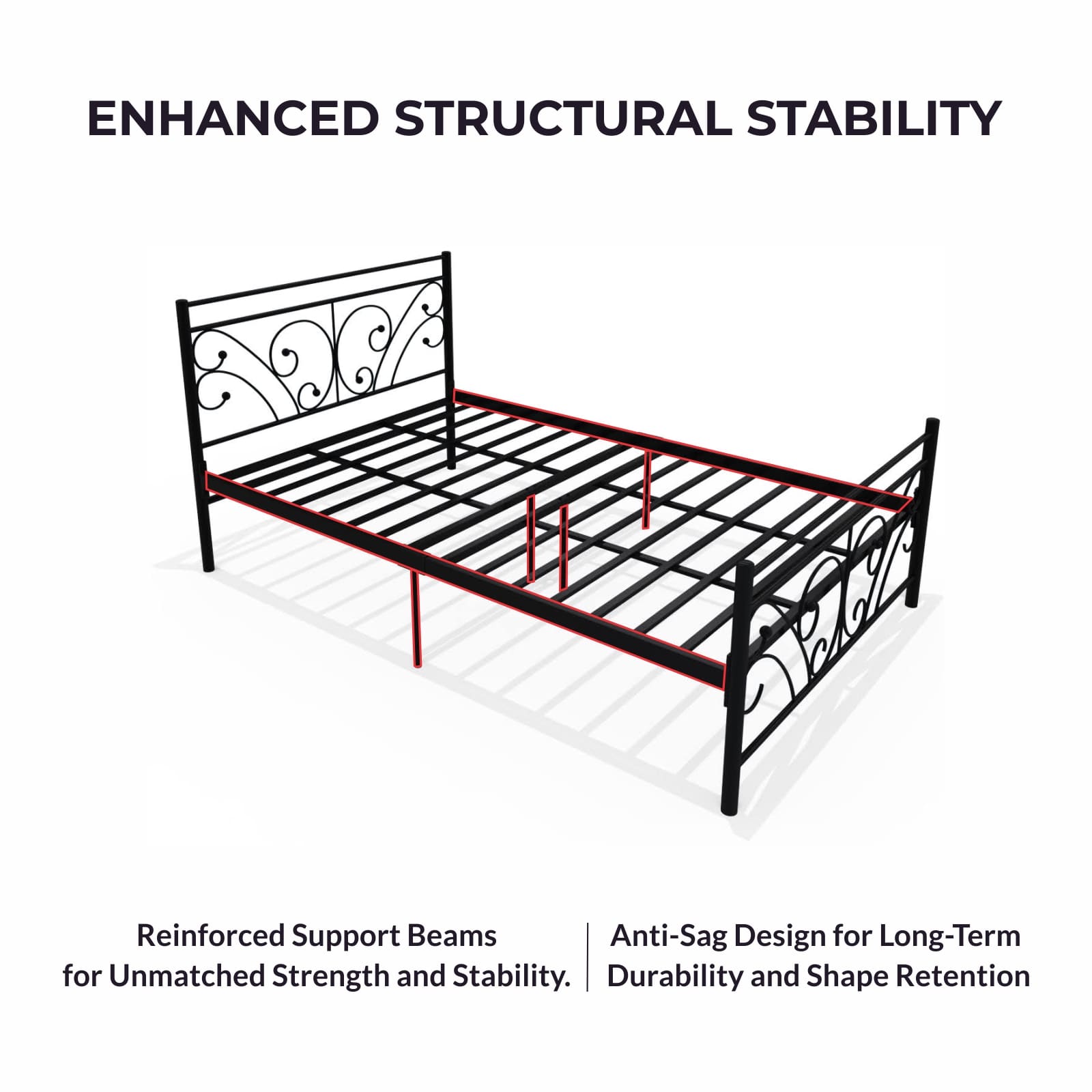 STYLISH, INNOVATIVE DESIGN – The Homdec Auriga Double Metal Bed features a strong metal frame designed for durability, with a weight capacity of 200 kg, evenly distributed. Its powder-coated finish provides a sleek appearance and long-lasting durability.