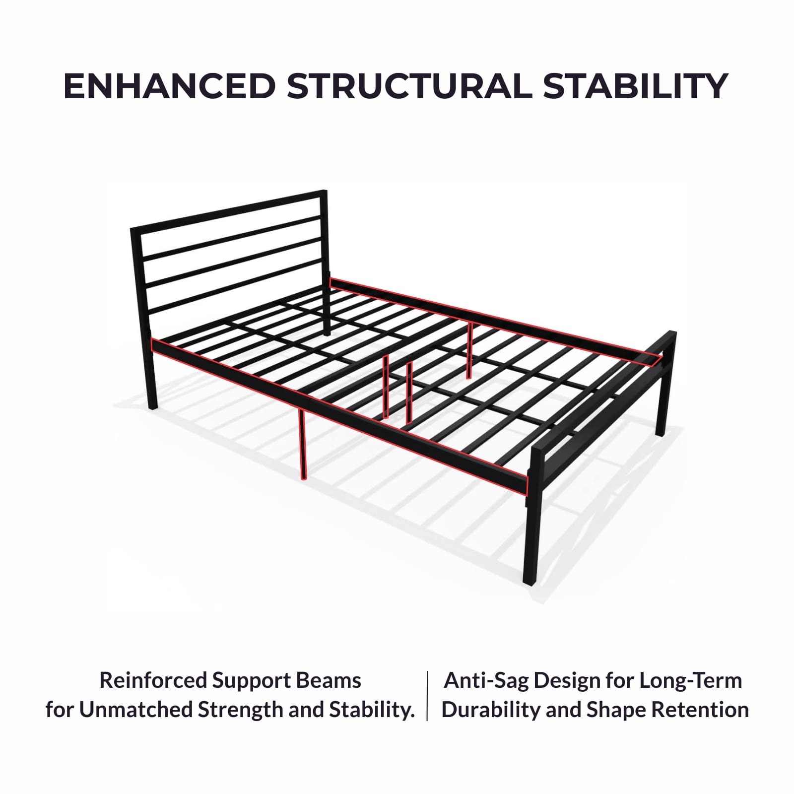 STYLISH, INNOVATIVE DESIGN – The Homdec Cetus Double Metal Bed boasts a robust metal frame engineered for durability, with a weight capacity of 200 kg, evenly distributed. Its powder-coated finish combines elegance with resilience for a long-lasting addition to your bedroom.