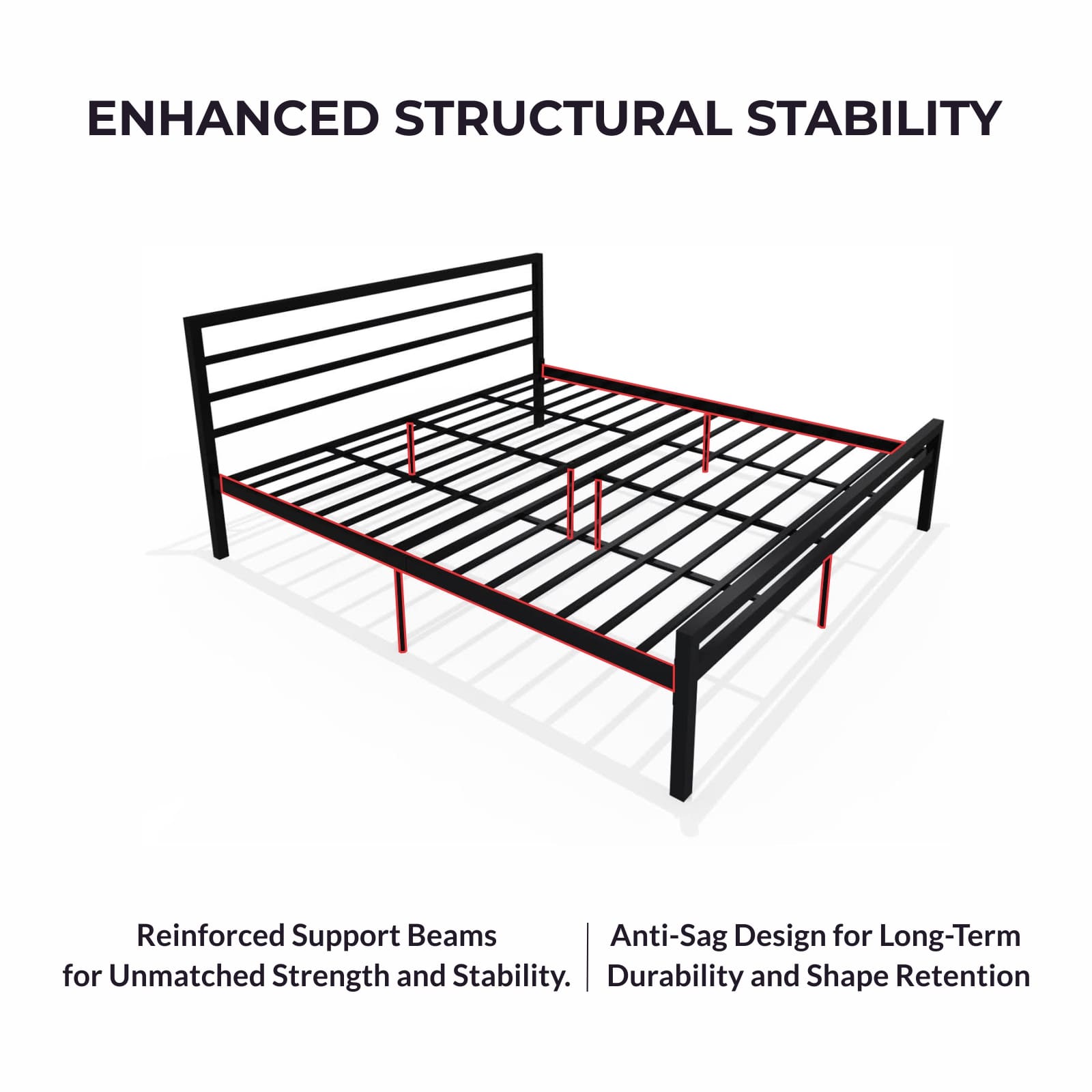 STYLISH, DURABLE DESIGN – The Homdec Cetus Queen Size Metal Bed is crafted with a robust metal frame, supporting up to 250 kg, evenly distributed. Its powder-coated finish adds durability and a sleek touch to your bedroom.