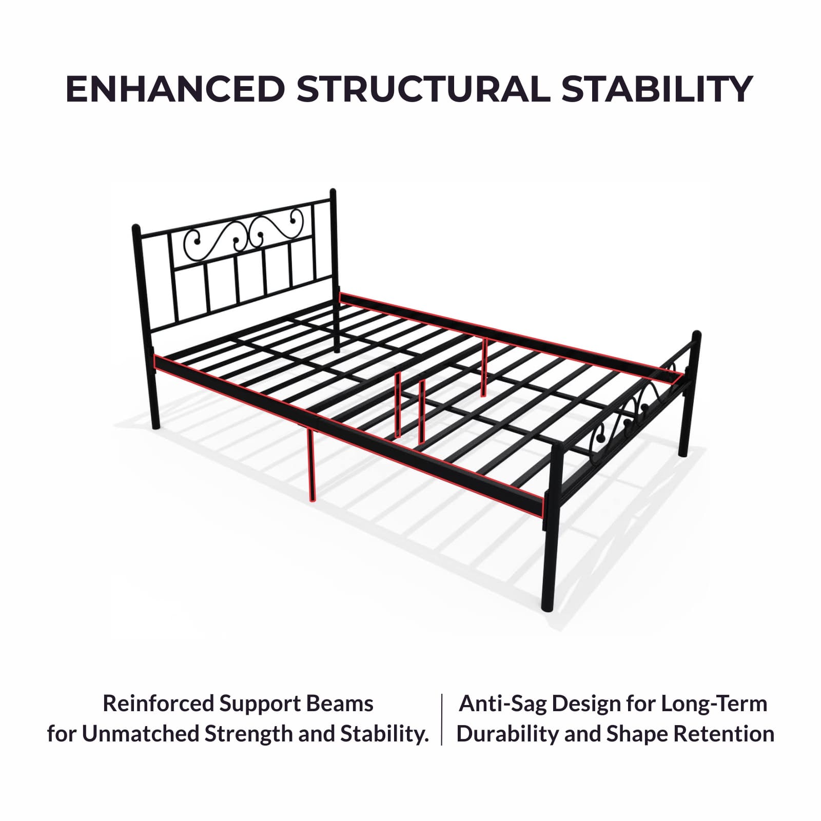 STYLISH, INNOVATIVE DESIGN – The Homdec Dorado Double Metal Bed is crafted with a strong metal frame designed for durability and support, with a weight capacity of 200 kg, evenly distributed. The powder-coated finish offers both style and longevity, making it a timeless addition to your bedroom.