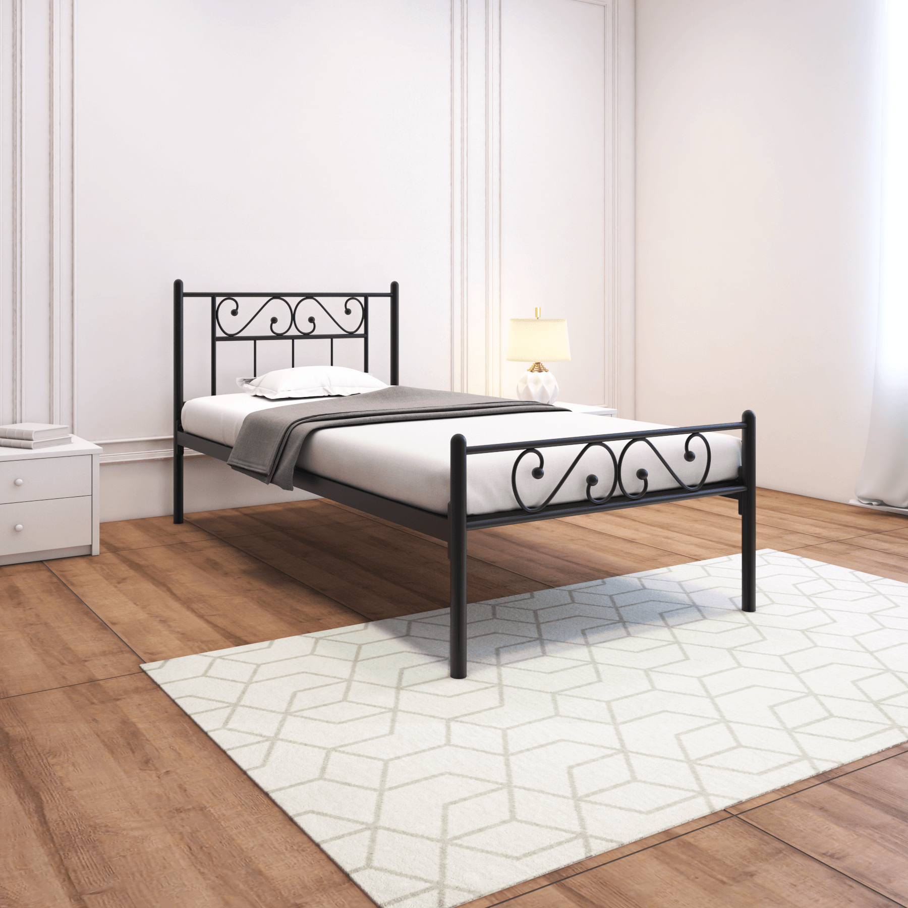 STYLISH, INNOVATIVE DESIGN – The Homdec Dorado Single Metal Bed features a robust metal frame designed for durability and support, with a weight capacity of 150 kg, evenly distributed. Its powder-coated finish provides a sleek and lasting look.