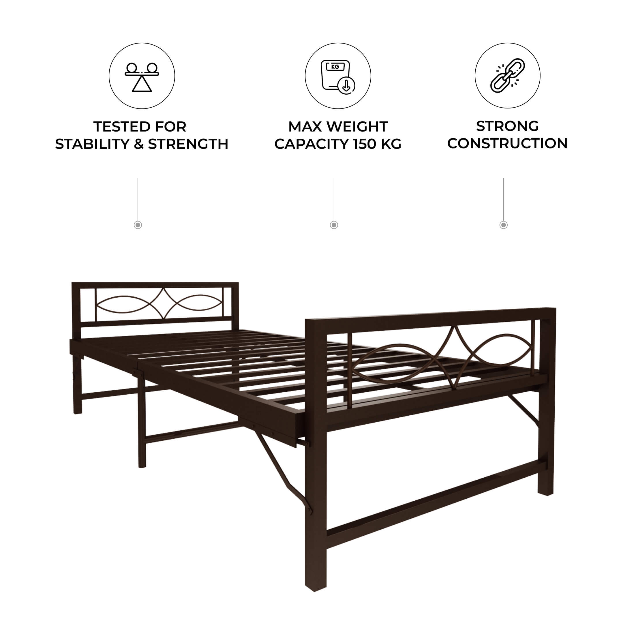 Designed for modern living, the Homdec Hydra Folding Metal Single Bed is all about convenience without compromising on strength. Built with a durable metal frame, it folds away effortlessly, making it perfect for small apartments, guest rooms, or hostels. Its compact design saves space when not in use, while the sleek Brown and Black finishes add a clean, minimal look to your interiors. Reliable, easy to use, and ready when you need it—Hydra makes everyday living simpler.