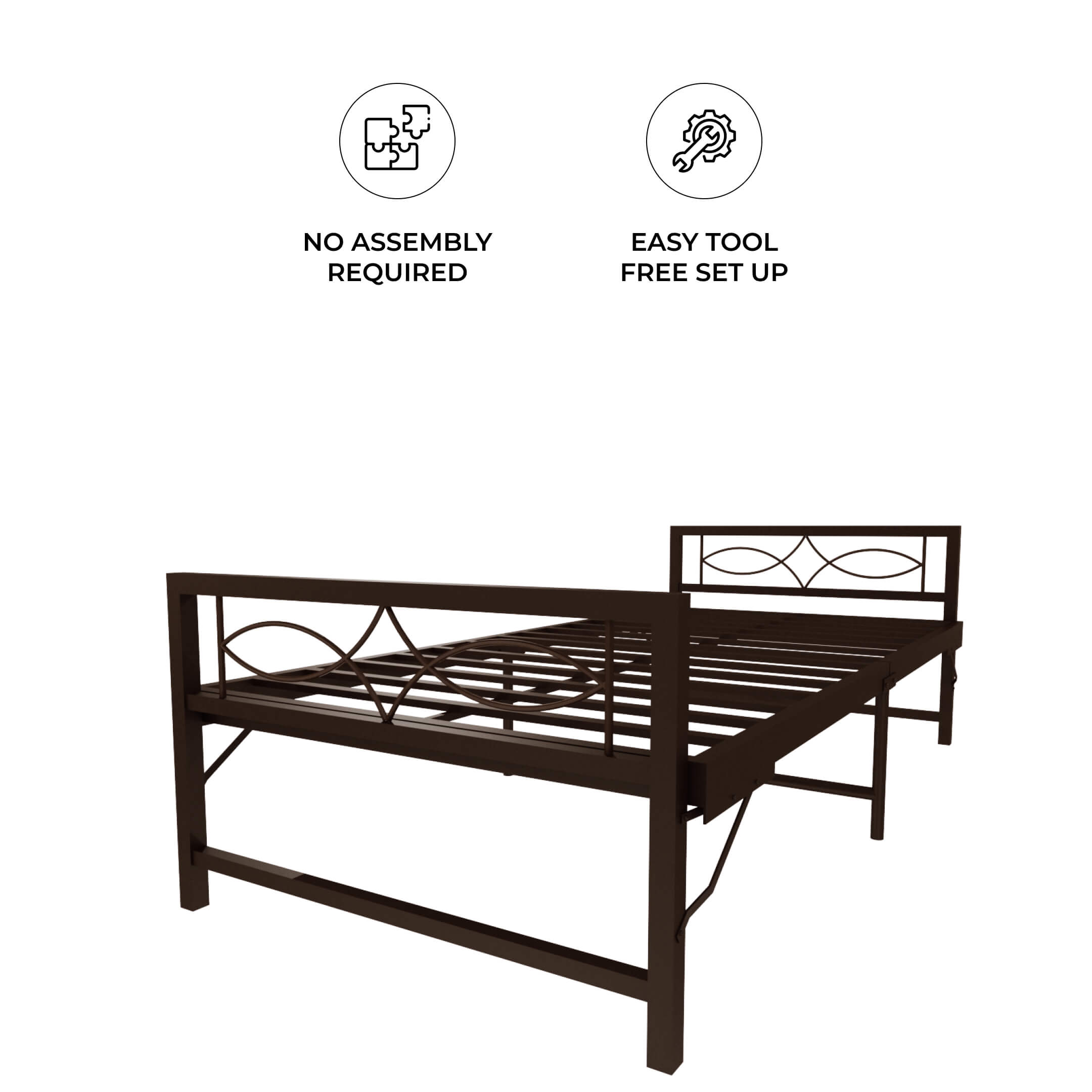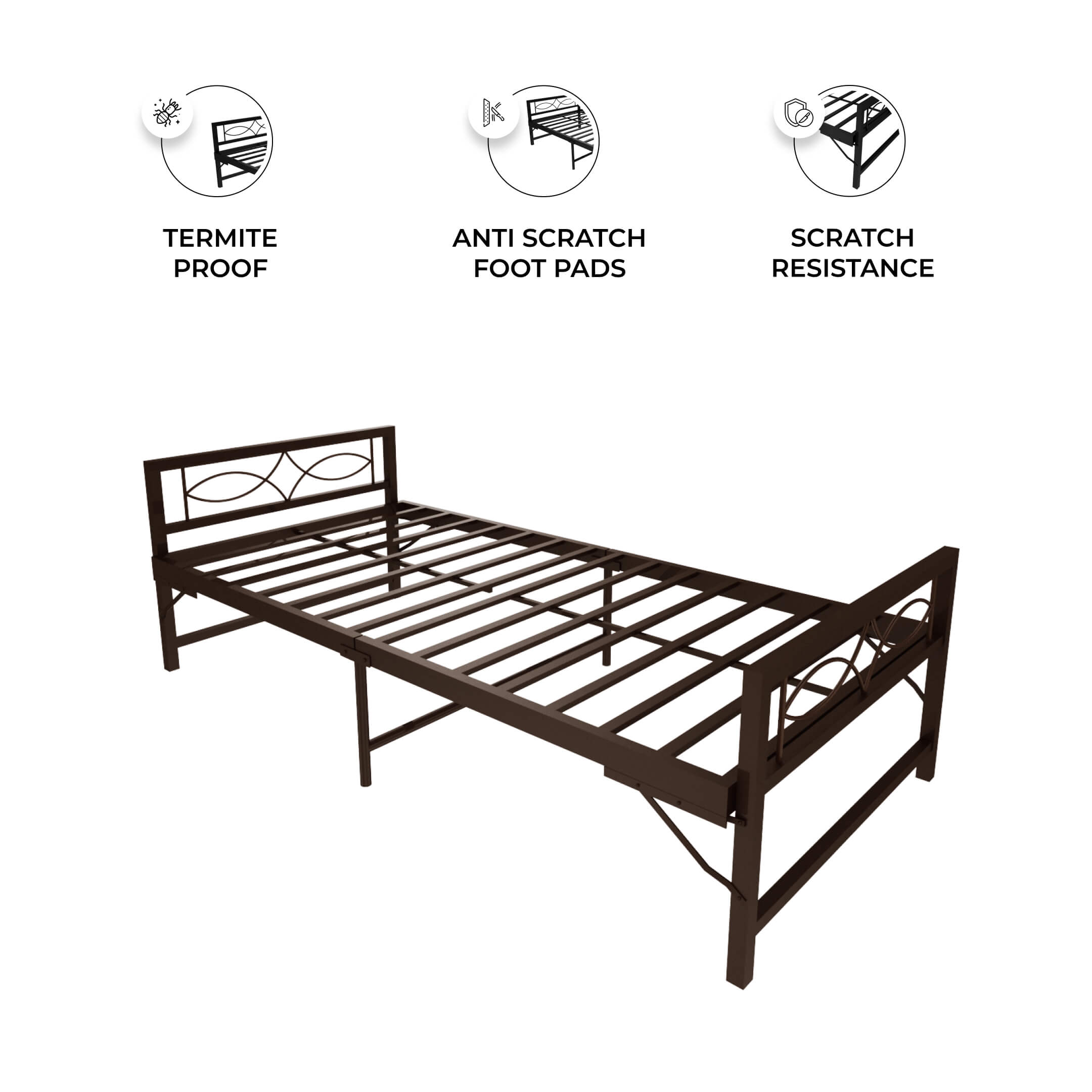 Homdec Hydra Space Saving Folding Metal Single Bed (Brown, 36 x 72)