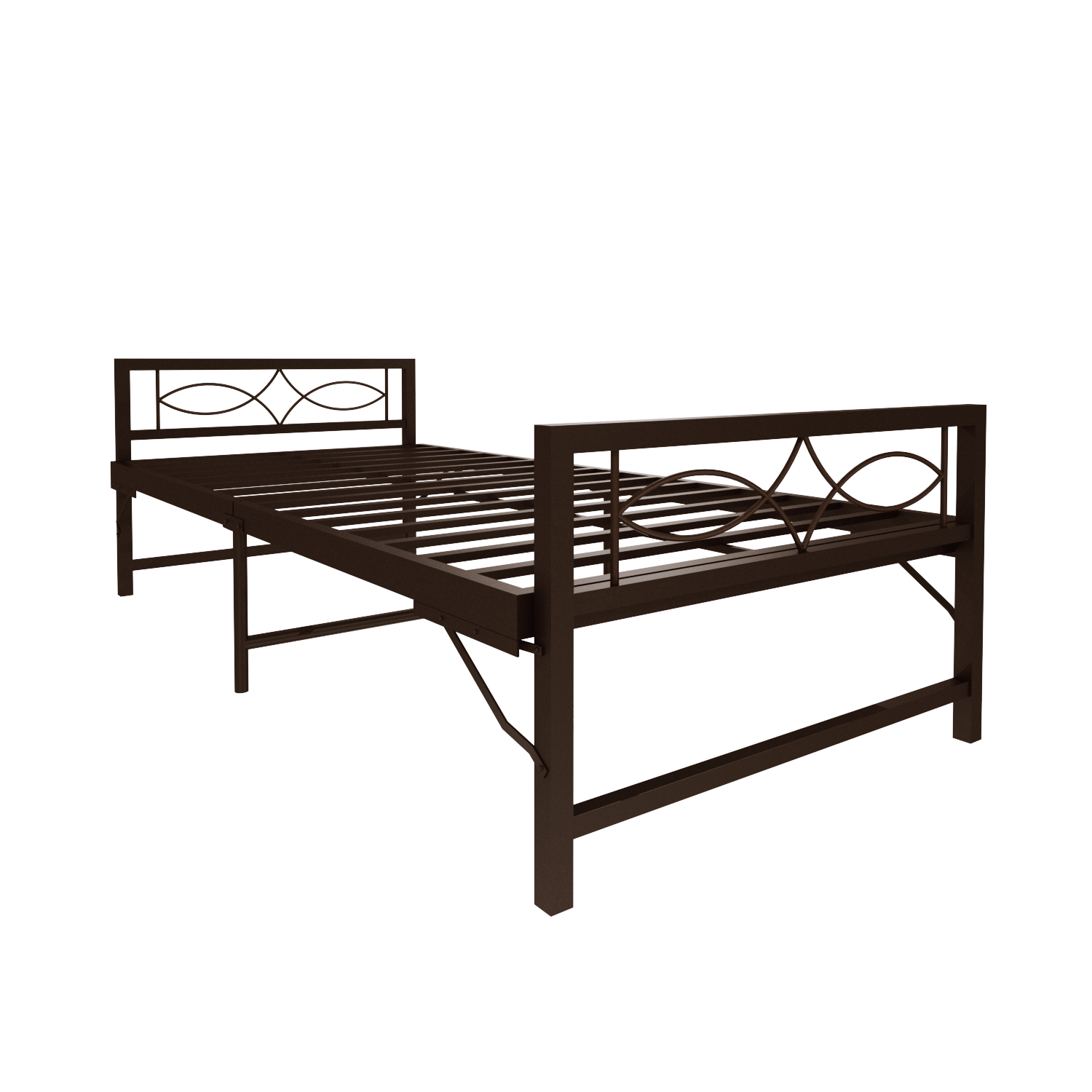 Homdec Aquarius Space Saving Folding Metal Double Bed (Brown, 48 x 75)