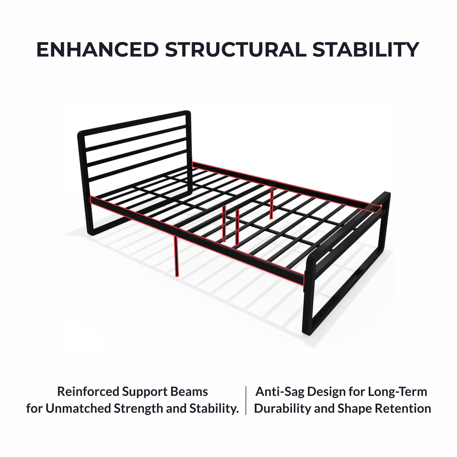 BUILT FOR A RESTFUL NIGHT’S SLEEP – The strong metal construction ensures stability and a noise-free sleep environment, perfectly fitting a mattress size of 48″ x 75″ (mattress not included) for a comfortable and peaceful night’s rest.