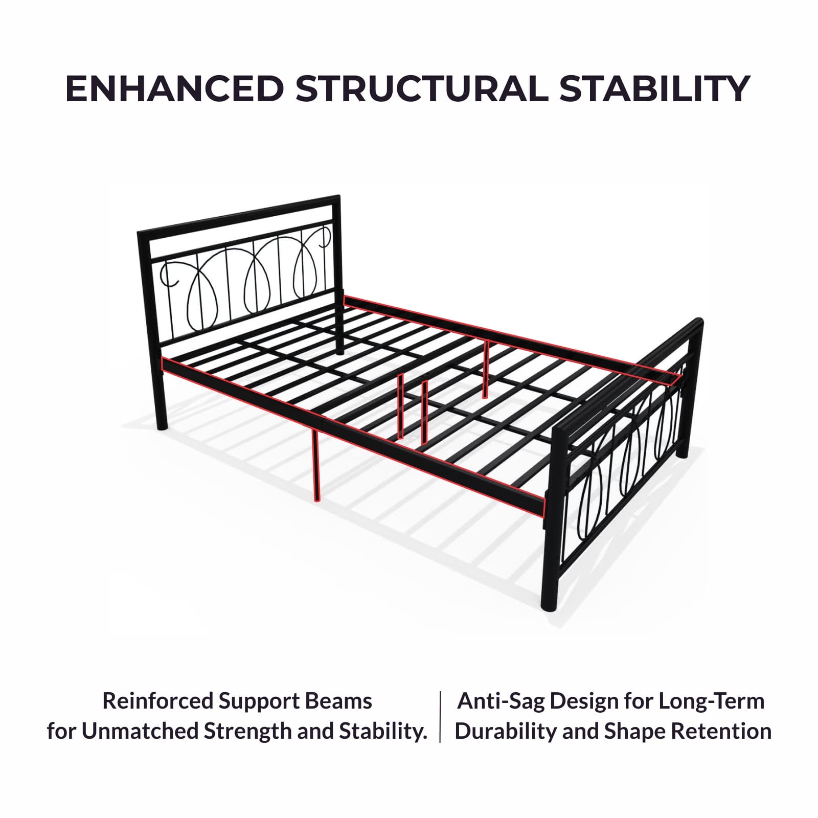STYLISH, INNOVATIVE DESIGN – The Homdec Lyra Double Metal Bed is crafted with a durable metal frame, offering strong support with a weight capacity of 200 kg, evenly distributed. The powder-coated finish adds a sleek and modern touch while ensuring long-lasting durability.