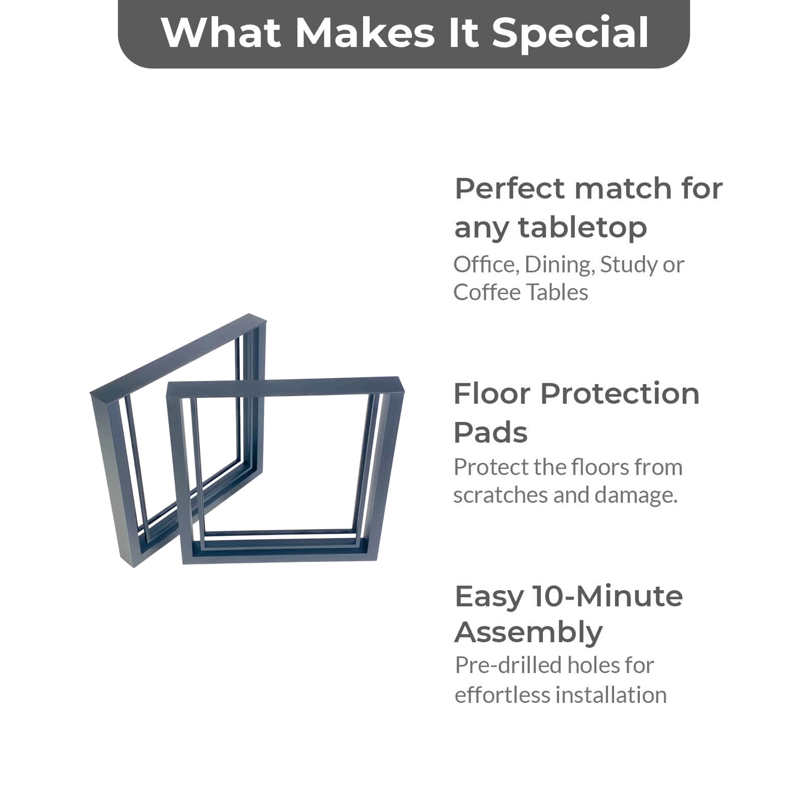 Homdec Pluvia Heavy Duty Industrial Style Metal Table Legs with Floor Protection Foot Pads for Dining table& DIY Projects | Powder-Coated Finish | Set of 2 (32" L x 28" H)
