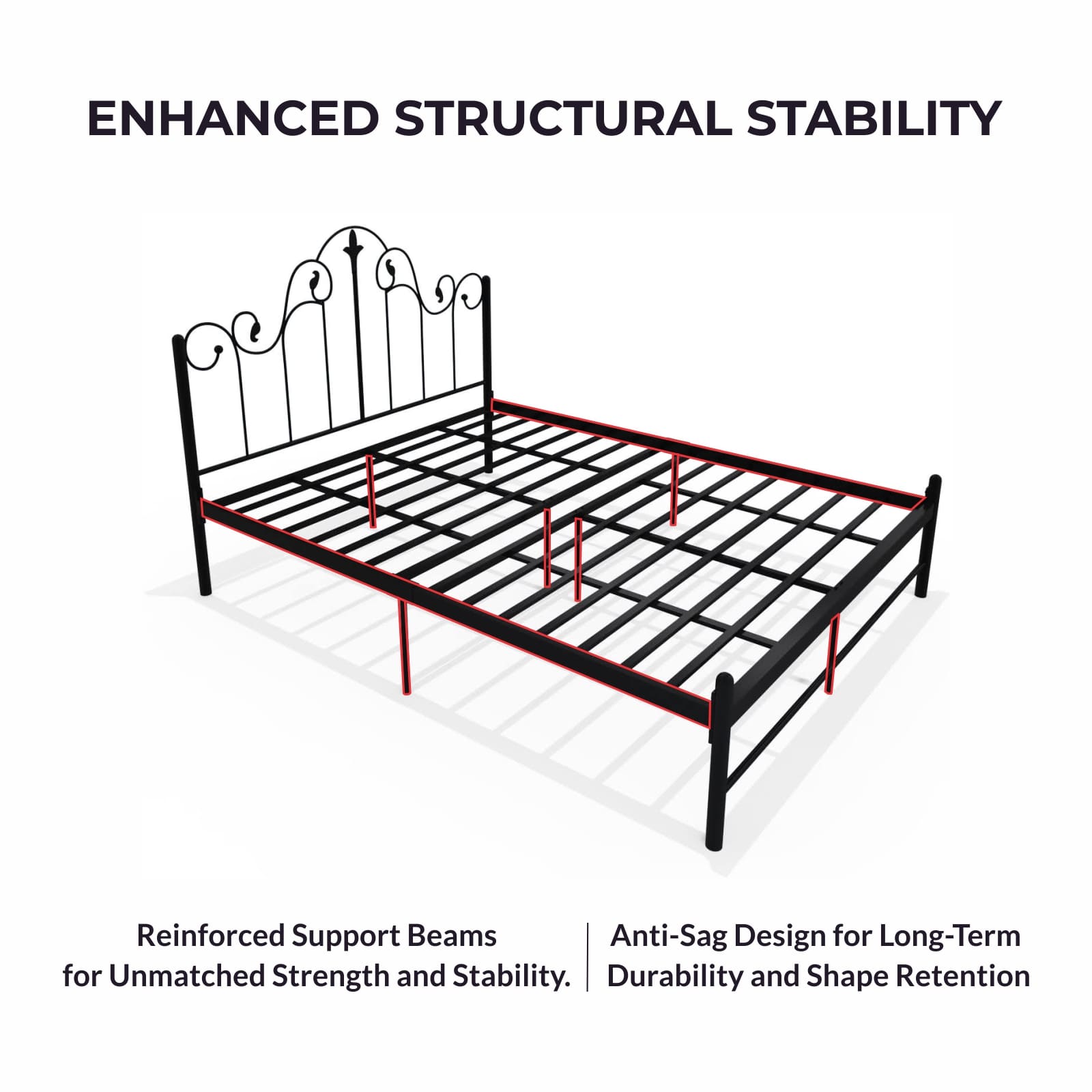STYLISH, INNOVATIVE, SNAP DESIGN – The Homdec Pavo Queen Size Metal Bed features a robust metal frame designed to support up to 250 kg, evenly distributed. Its powder-coated finish ensures long-lasting style and durability.