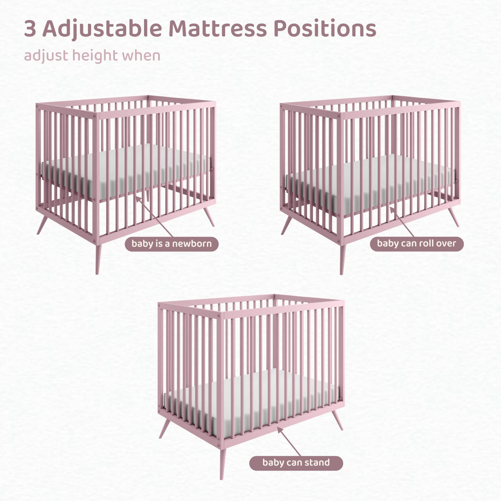 Three adjustable mattress positions that can be lowered as your baby begins to sit, pull up, and stand.