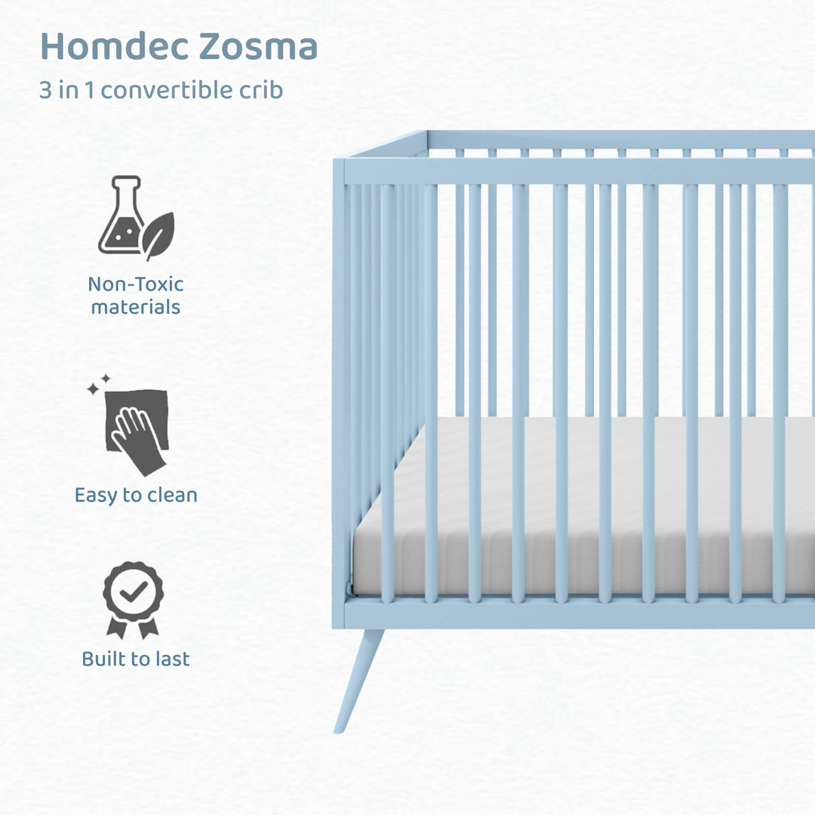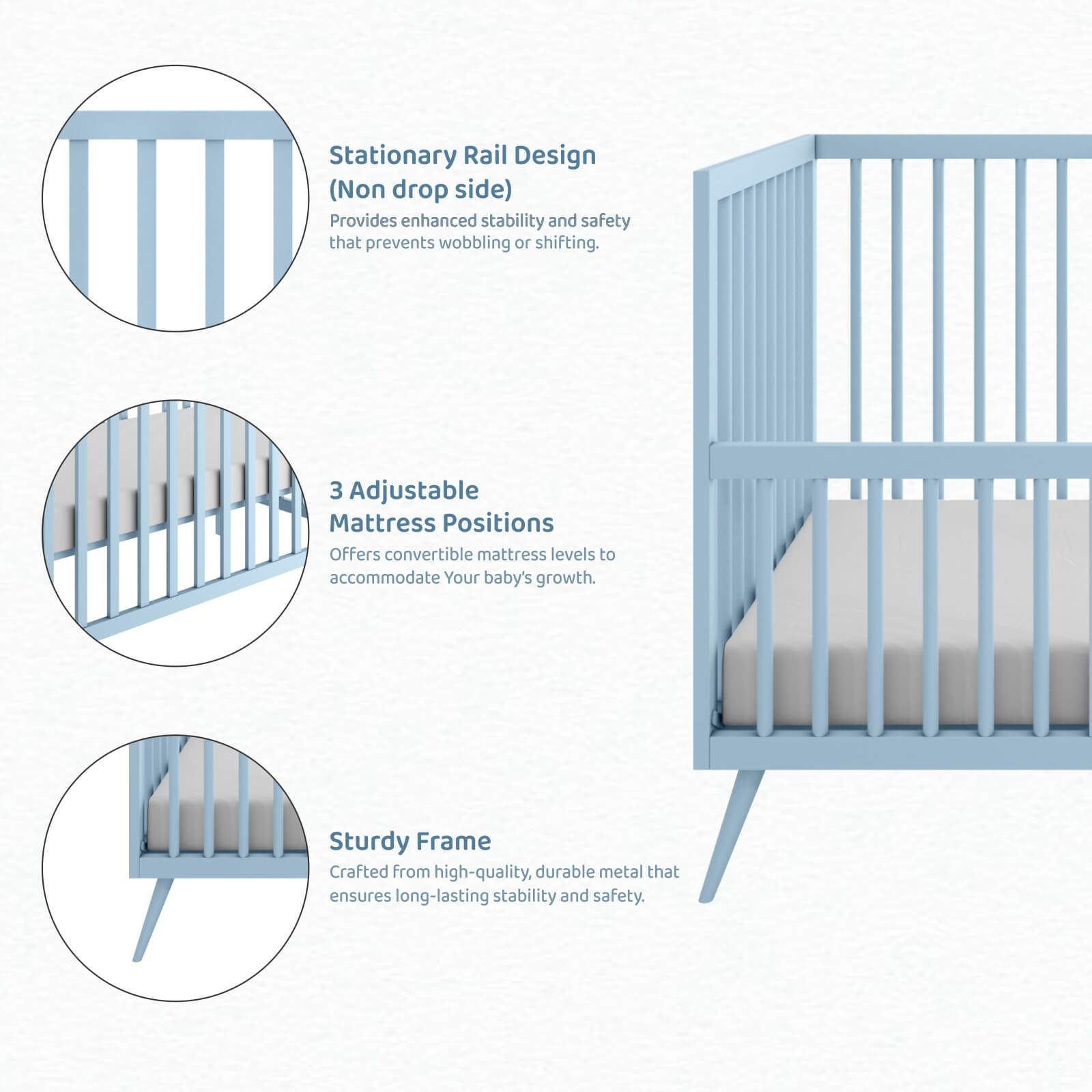 Homdec Zosma Metal Baby Crib/ Baby Cot with 3 Height Adjustable Mattress Positions (Blue)